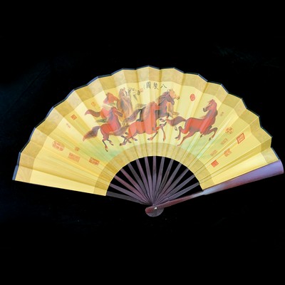 大黃金印圖扇-八駿圖 - 台北節日節慶佈置飾品派對活動用品專家-國泰禮品